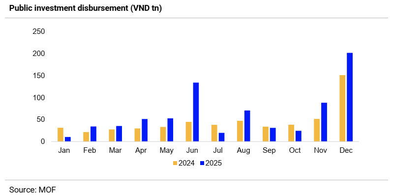 Amid limited remaining room for monetary policy easing, fiscal policy emerged as the primary pillar supporting economic growth. In 2025, public investment was significantly accelerated, underpinned by a series of important policy and institutional reforms.