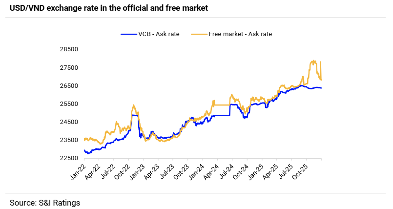 It is worth noting that following three Federal Reserve rate cuts in 2025, the U.S. dollar weakened significantly, with the DXY index declining by 9.3% YoY. At the same time, the VND–USD interest rate differential gradually returned to positive territory, enhancing the relative attractiveness of the Vietnamese dong. As a result, exchange rate pressures are expected to ease in 2026, supporting greater currency stability going forward.